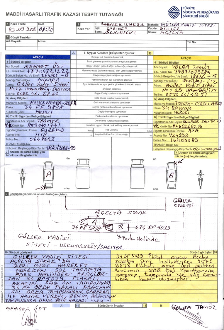 - İmza: Islak imza olmadan tutanak geçersizdir. Her iki sürücü de formu imzalamalıdır.